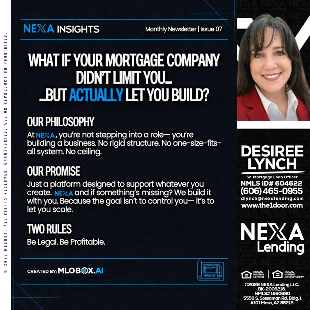 Hi, my name is Desiree Lynch. I’m a Loan Officer with NEXA Lending LLC., offering personalized mortgage solutions, fast customized quotes, great rates and service with integrity.